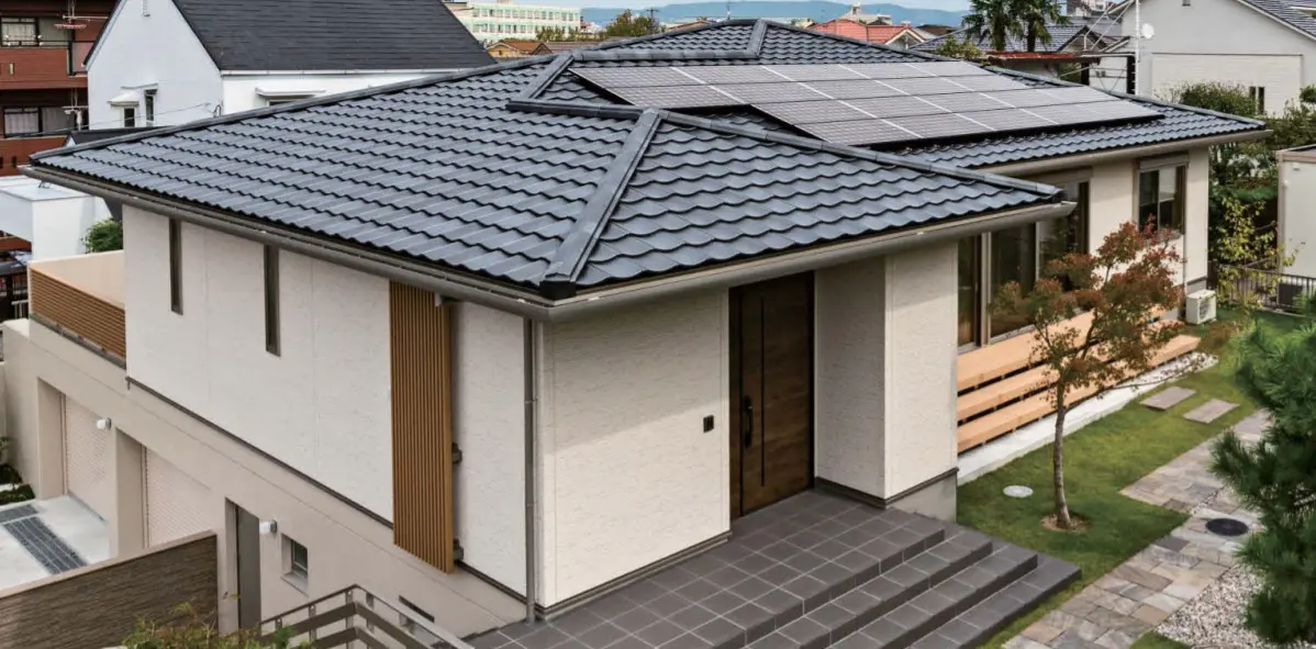 一般的な瓦の半分の軽さで地震や台風にも強く、機能的にも優れた「ROOGA」は、意匠性も素晴らしく、お住まいに高級感を与えてくれます。