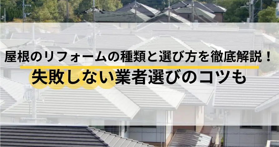 リフォームの種類は、屋根の現状や予算、デザインの好みなどを総合的に考慮して選ぶことが大切です。また、信頼できる業者を選ぶことも、満足のいくリフォームを実現するためのポイントです。