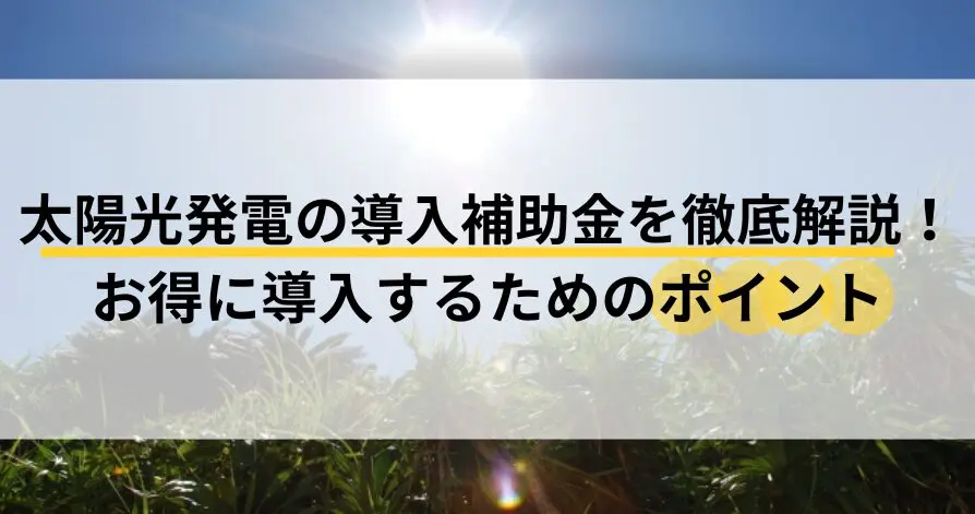 この記事では、太陽光発電導入の補助金制度について詳しく解説するとともに、お得に導入するためのポイントをお伝えします。