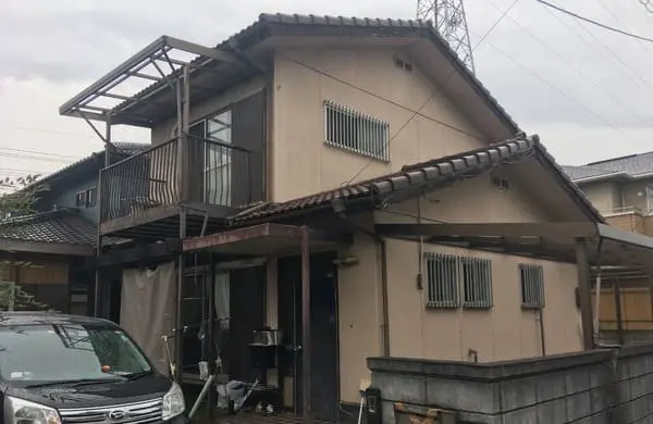建物全体を見てみると、外壁には色あせや汚れがあり、年月の経過を感じさせる状態でした。