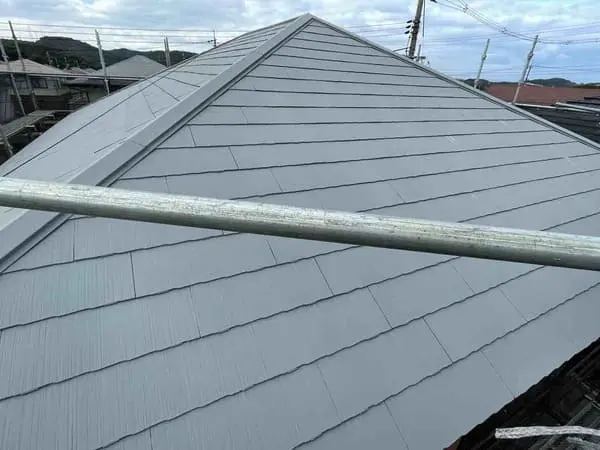 屋根全体が明るいグレー系で統一され、ツヤのある上品な仕上がりになっています。