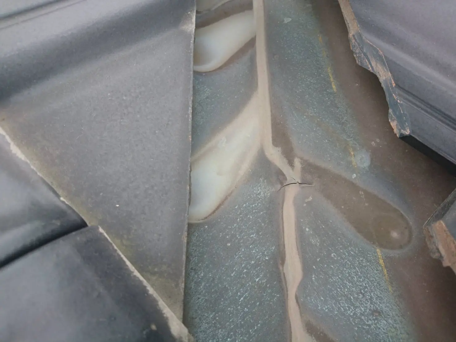 事前の調査では谷板金のところに亀裂が入っていることがわかりました。