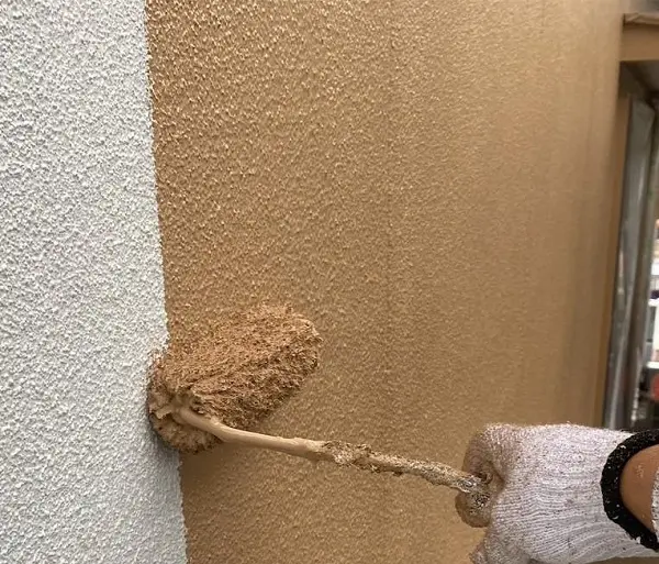 S様邸では外壁の下塗り材に微弾性フィラーという下塗り材を使用しました。