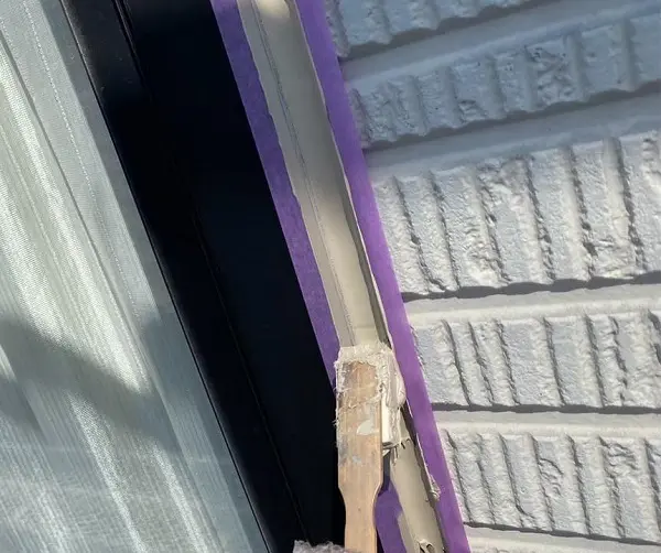 次に施工箇所の周りにマスキングテープを張って外壁が呼びれないようにし、プライマーを塗布しました。