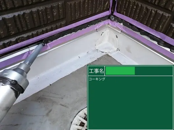 最後に外壁と立ち上がり部分の間も新しいコーキング材で埋め、ベランダの立ち上がり部分の張り替えも完了です。