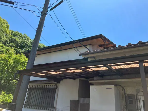 岡山県浅口市Y様邸・築42年 | 屋根塗装・外壁塗装 | 経年劣化したカーポート波板が割れて穴が開いていました(現場調査②)