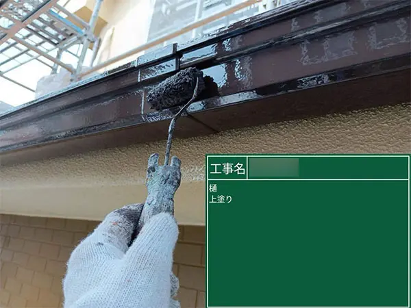 こちらは、屋根に降った雨を適切に排水する役割がある雨樋を中塗りしている様子です。