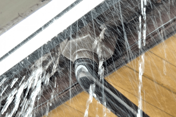 雨どいは、雨を屋根から地面・排水路に流す導線の役割を果たす、重要な箇所です。落ち葉などが詰まったり、途中でヒビや割れがあると、外壁など通常では濡れない箇所に雨水がかかり、雨漏りの原因にも繋がります。