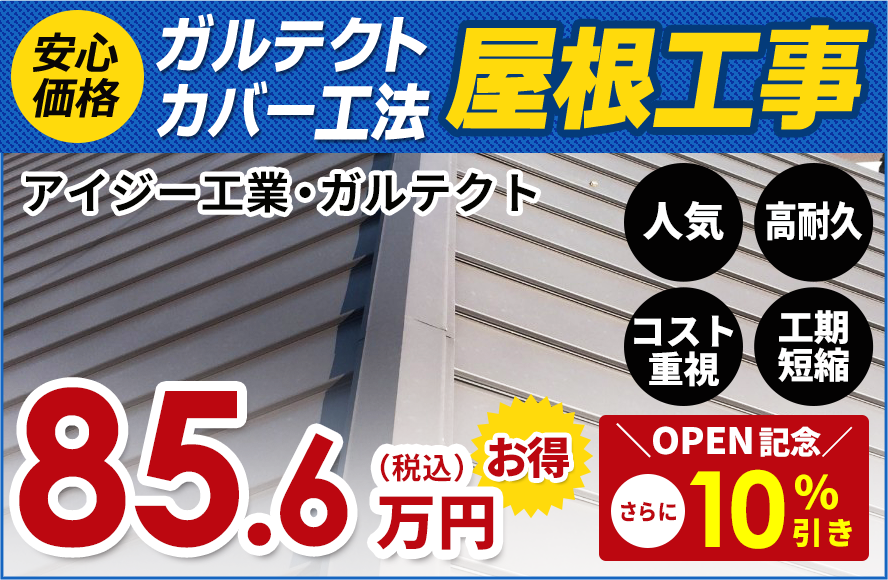 2004年以前に設置された一般的なスレートコロニアル屋根には、アスベストを含むものも多くあります。アスベストを含む屋根材は処分費用が高く、石綿飛散防止のための養生まで発生し高額なリフォームとなります。そんな時には、既存の屋根材にガルバリウム屋根材を被せるカバー工法がコスト的にも最も優れているのです。