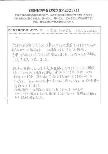 初めての依頼だったため、工事をしてくれる業者さんはどんな人が来るのかと心配でした。